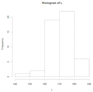 > hist(L,breaks=c(140,150,160,170,180,190))